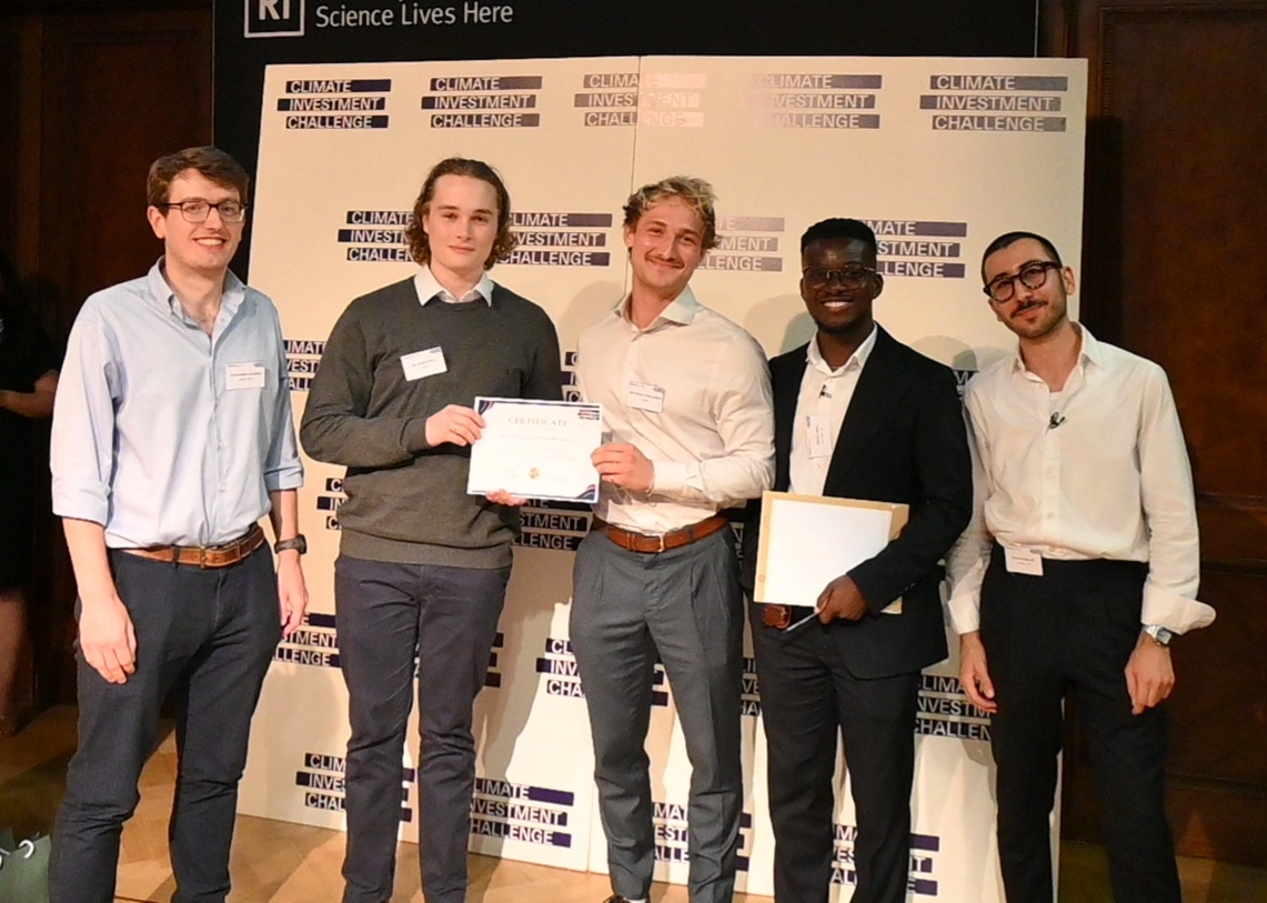 The team (pictured right with CGFI judge Alex Jackman) were awarded the Prize after final pitches and judging at the Climate Investment Challenge finale, 19th June.